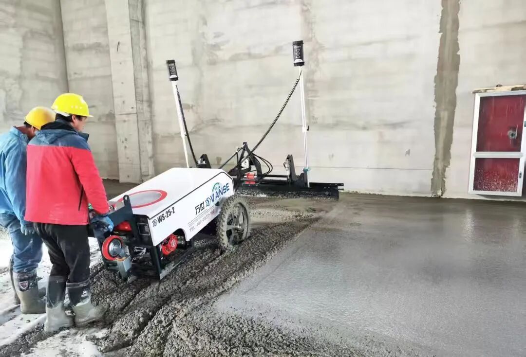 知在創(chuàng)新,行在突破。面對混凝土地面施工中的精度控制難題,項目團隊突破傳統(tǒng)思維,率先引進激光整平機器人,通過激光發(fā)射器建立基準面,機器人實時采集高程數(shù)據(jù)并自動調(diào)節(jié)刮板,實現(xiàn)毫米級精度的地面平整。施工流程精簡為場地準備、混凝土攤鋪、機器人整平和收面養(yǎng)護四個環(huán)節(jié),僅需1名操作手和3名輔助人員即可高效運作。這一變革性技術(shù)使施工效率提升40%,人力成本降低50%以上,并支持全天候連續(xù)作業(yè),為后續(xù)工序節(jié)省15~20天工期,為保障項目整體進度奠定了堅實基礎(chǔ)。