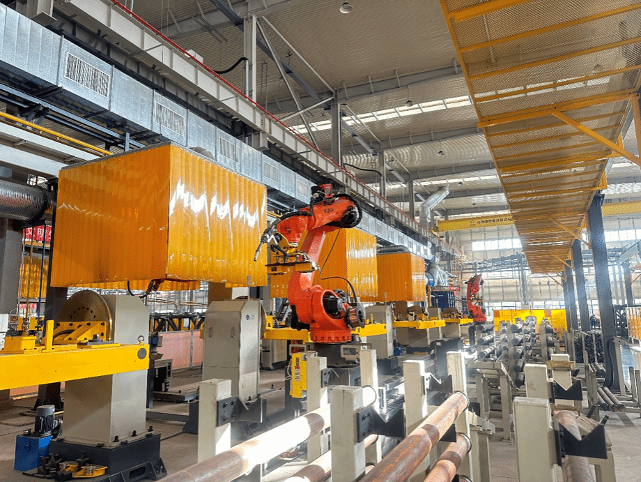 工廠占地面積300.31畝,建筑面積90669.58平方米,以“綠色制造、智能制造、可持續(xù)制造”為核心理念打造現(xiàn)代化生產(chǎn)基地。不僅建有完備的智能化、數(shù)字化、自動化生產(chǎn)過程管理系統(tǒng),在工藝方法與工藝裝備上均采用國內(nèi)領(lǐng)先技術(shù),形成了能源管理、環(huán)保管理及產(chǎn)品全生命周期管理的綠色體系。配備11條智能化生產(chǎn)線與150余臺工業(yè)機器人,關(guān)鍵裝備數(shù)控化率達100%,全部生產(chǎn)設備數(shù)控化率達84.1%,實現(xiàn)了產(chǎn)品從下料、組對、焊接、涂裝到轉(zhuǎn)運全流程制造環(huán)節(jié)的自動化、智能化、數(shù)字化,配備 4 條粉末涂裝生產(chǎn)線, 產(chǎn)品生產(chǎn)安全高效環(huán)保。