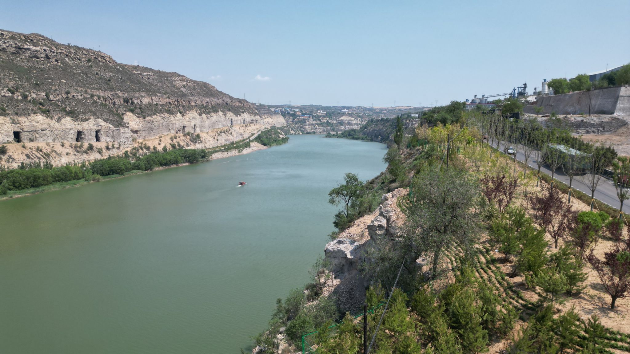 面對(duì)黃河及主要支流沿岸水利設(shè)施、邊坡及臨空道路等風(fēng)險(xiǎn)點(diǎn),項(xiàng)目團(tuán)隊(duì)建立動(dòng)態(tài)監(jiān)測(cè)體系,高效完成河道清淤、排水渠修復(fù)等工作,在汛期來(lái)臨前筑牢安全屏障,以“有良心”守牢安全底線。在生態(tài)修復(fù)中,堅(jiān)持“自然修復(fù)為主、人工干預(yù)為輔”,累計(jì)栽植鄉(xiāng)土植物11.5萬(wàn)株,打造生態(tài)護(hù)坡5萬(wàn)平方米,完成綠化面積39萬(wàn)平方米。面對(duì)荒坡綠化反季節(jié)施工難題,創(chuàng)新采用容器苗假植、斷根苗保濕等方式提高苗木成活率,用智慧和汗水讓昔日的荒坡成功披上綠裝,實(shí)現(xiàn)了“荒溝變綠洲”的生態(tài)愿景。