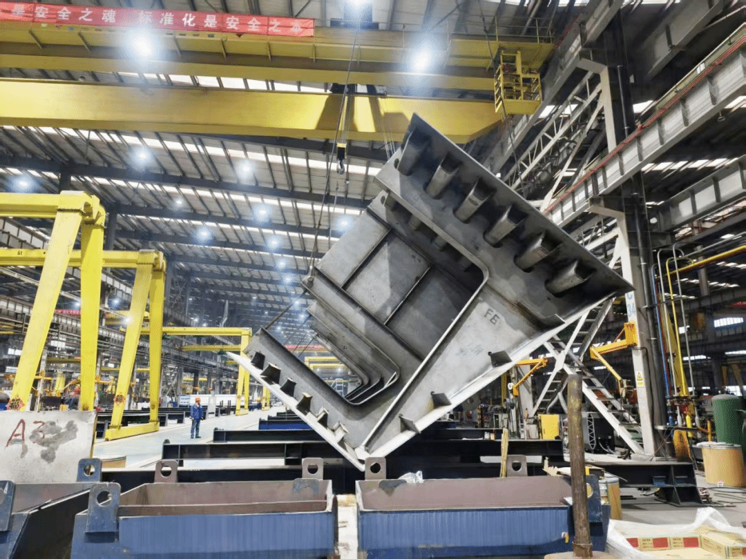 這批塔筒單套總高140米,采用6段式高精度模塊化設(shè)計(jì),法蘭最大直徑達(dá)5.65米,16套總重量約8000噸,相當(dāng)于約6000輛家用轎車的總重量。龐大尺寸與重量背后,是對(duì)質(zhì)量零偏差與交付零延誤的高標(biāo)準(zhǔn)要求。