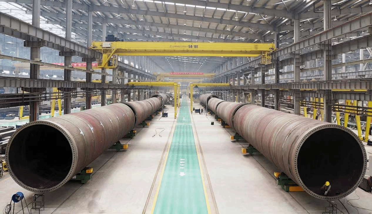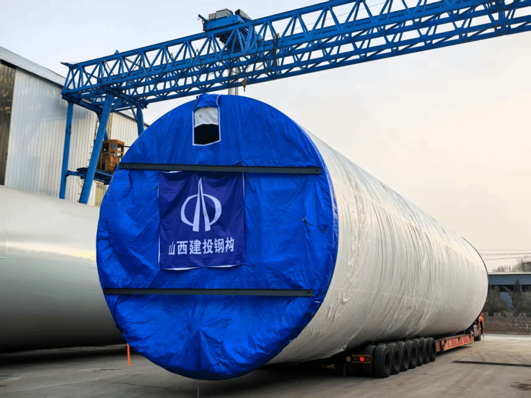 制作完成的塔筒,即將發(fā)運(yùn)到施工現(xiàn)場(chǎng)